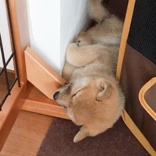 壁際にちんまり♪ 柴犬ベビーちゃんのリラックスタイム。狭いとこ好きが炸裂しちゃいます…(*´艸`)